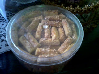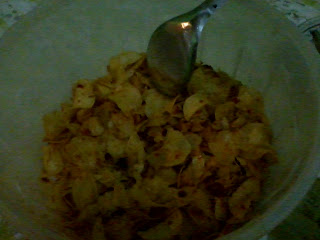 Yang kelima adalah keripik singkong balado. Dua hari sebelum lebaran tukang keripik singkong yang suka lewat depan rumah pasti dah manggil-manggil, hehe… Maklum langganan tiap tahun sih..